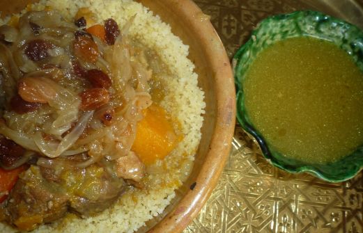 Assalamou alakiom wa rahmatoulahi wa barakatouh, bonjour Comme le veut la tradition, j'ai fait pour fateh moharam ou le nouvel an musulman un couscous pas au sept légumes mais ce qu'on appele Tfaya au Maroc avec des oignons caramélisés et raisins secs. J'aime beaucoup le co [...]