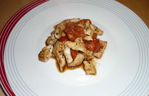 Vraiment très rapide à faire et rien de compliqué, pour un goût sucré grâce au vinaigre balsamique et aux tomates cerises. Ingrédients (pour 2) - 3 escalopes de poulet - 8 tomates cerises - du basilic - 4 cuillères à soupe de crème balsamique - sel, poivre - de l'huile R [...]