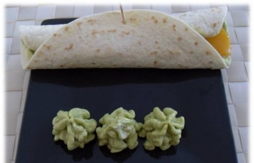 Il faut toujours avoir des galettes de blé sur soi. La preuve en image : un avocat bien mûr et des poivrons marinés qui trainent au frigo et voilà de jolis petits wraps 5 minutes chrono ! L'alliance crème d'avocat/poivrons est vraiment bonne ; la crème seule, on sent qu'il manque un truc… [...]