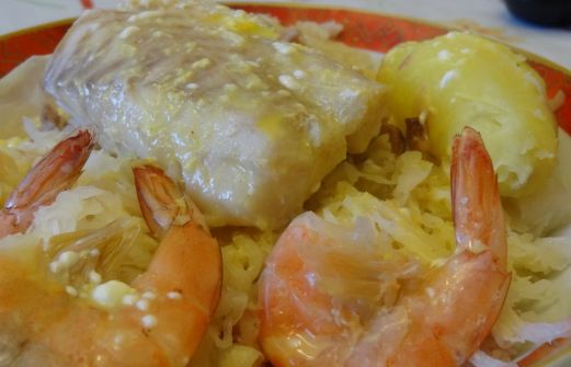 Aujourd'hui, je devais me faire une simple choucroute de la mer, il me restait 2 tranches d'andouille que je devais manger en entrée, et puis une petite inspiration, et si je cuit l'andouille et, que je la mélange à la choucroute, un peu comme des lardons puisqu'il s'agissait de l'andouille de [...]