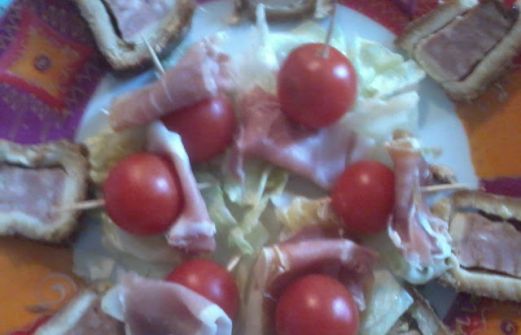 Salade de restes Des restes à finir, jouer sur la déco! Ingrédients : Salade verte Tomates cerises Jambon de bayonne Une vinaigrette ou juste un peu d'huile Du pâté en croûte Matériel : Une assiette Des piques en bois Un couteau Découpé l [...]