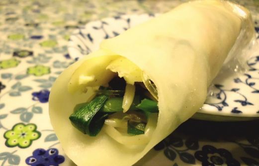 Ce n'est pas un rouleau de printemps sur la photo, c'est une crêpe fine cuite à la vapeur garnie de légumes et oeufs. On l'appelle "crêpe de printemps". En Chine pour fêter le début du printemps, on sert ces crêpes avec différents légumes, oeufs et viande précuits. Pour ceux [...]