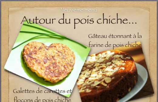 Depuis déjà neuf semaines, je propose sur ma page Facebook , chaque jeudi en général (mauvaise exemple cette semaine, c'est le vendredi!!!) un menu, reprenant deux recettes du blog... Je me suis rendu compte qu'il pourrait être intéressant d'insérer cette proposition de menu dans les publicat [...]