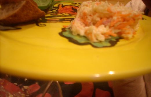 Pour 1\4 d'un gros chou pommé, râpé avec une carotte et 1\2 oignon rouge.... 2 cuillères à soupe de nayonnaise 2 cuillères à soupe de yogourt 1 cuillère à thé de moutarde de Dijon 1 cuillère à thé de vinaigre de vin rouge 1 cuillère à thé d'agave 1\4 de cuillère à [...]