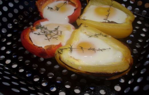 Un repas prêt en 15 minutes. 1-allumer le bbq 2-préparer les légumes pour la salade épinards roquette oignon rouge haricots blancs olives noires tomates thym frais ajouter éventuellement du feta 3-couper des poivrons en 2 4-verser un oeuf dans c [...]