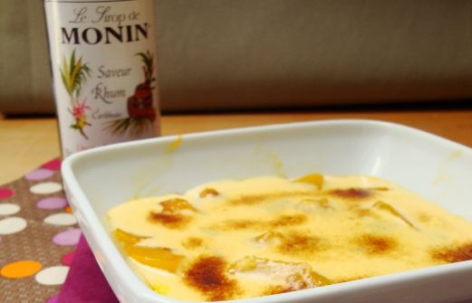 J'ai trouvé cette recette par hasard, elle est tirée d'un livre Larousse "Tians & gratins" de Valery Drouet. Quand je l'ai vue, je l'ai tout de suite mise de côté pour une prochaine fois et cette prochaine fois est enfin arrivée. Comme j'ai reçu une bouteille de sirop Monin "saveur r [...]